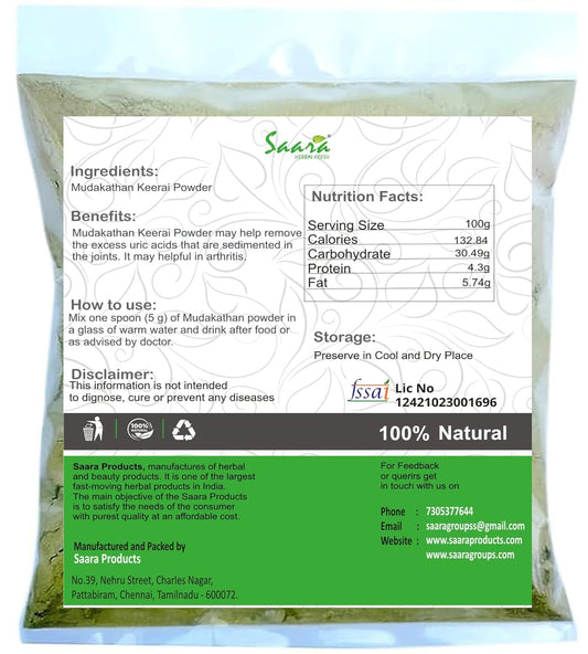 100g Herbal Fresh Mudakathan Keerai Powder - Balloon Vine Leaf, Kanphata, Budda Kakara, Agniballi, Jyotishmati Leaf Powder Pack