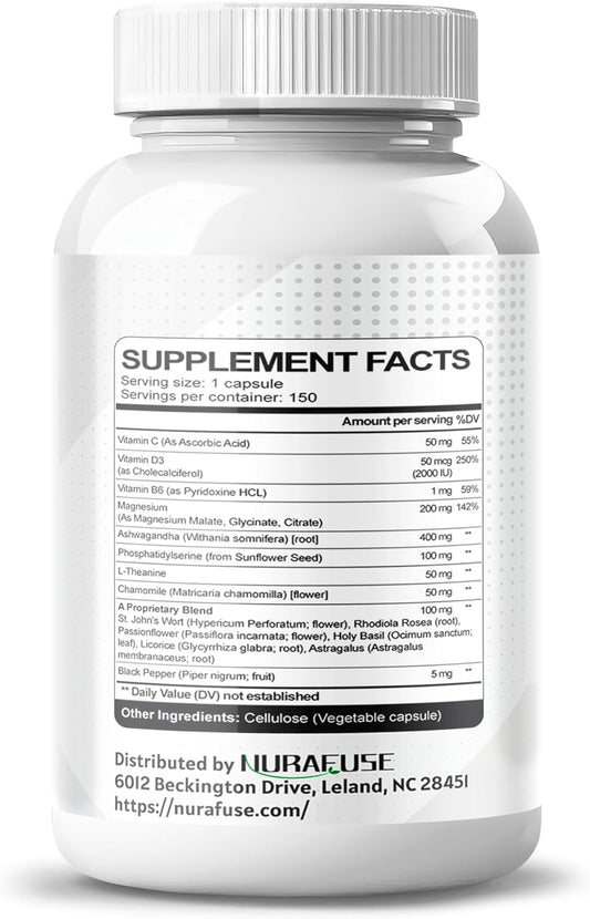 15-in-1 Ashwagandha Supplement for Cortisol Health with Magnesium, Phosphatidylserine, and Herbal Extracts - Made in USA