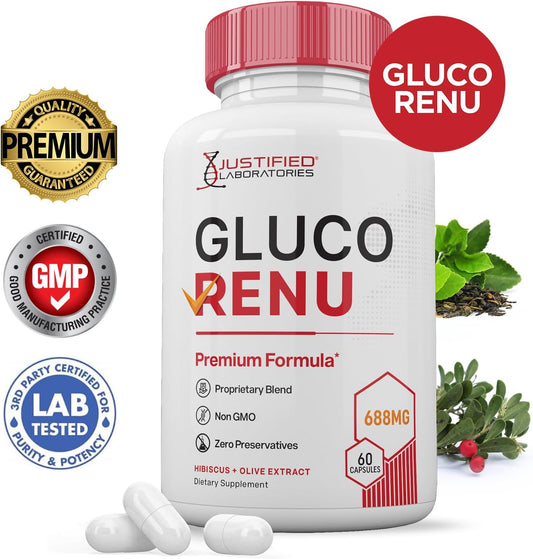 3 Pack of Gluco Renu Glycogen Support Pills with Premium Formula - 180 Capsules - Justified Laboratories Sugar Balance Supplement