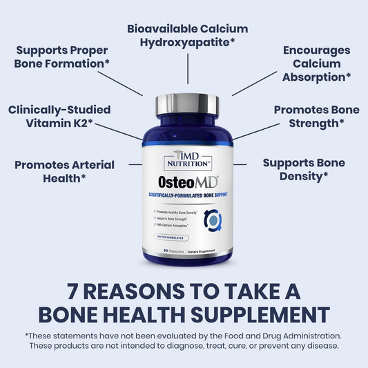 1MD Nutrition OsteoMD: Comprehensive Support Supplement for Women and Men - Promotes Bone Density with Vitamin D - Contains Hydroxyapatite, Vitamin D3, and K2 - 90 Capsules