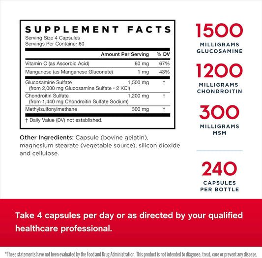 2-Pack Jarrow Formulas Glucosamine Chondroitin MSM Capsules - Joint Health Support with Vitamin C & Manganese - 240 Capsules, 120 Servings