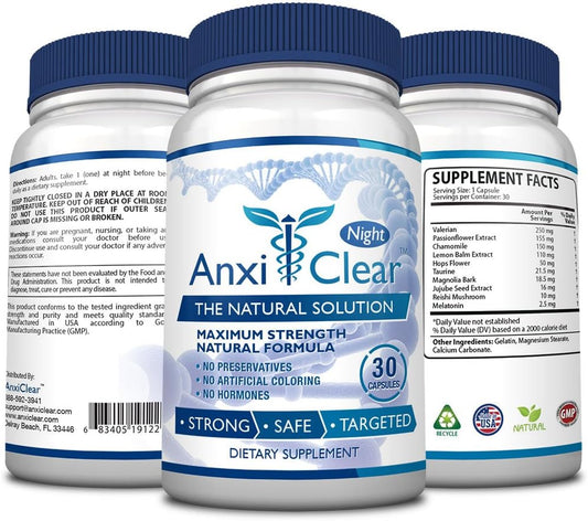 AnxiClear Supplement for Mood Boosting, Mind Calming, and Serotonin Elevation - Includes 5-HTP and L-theanine - Day and Night Formula
