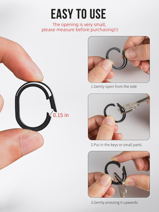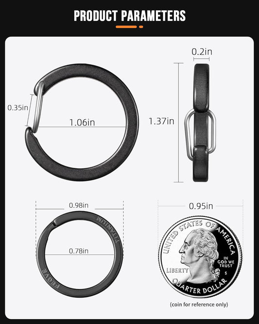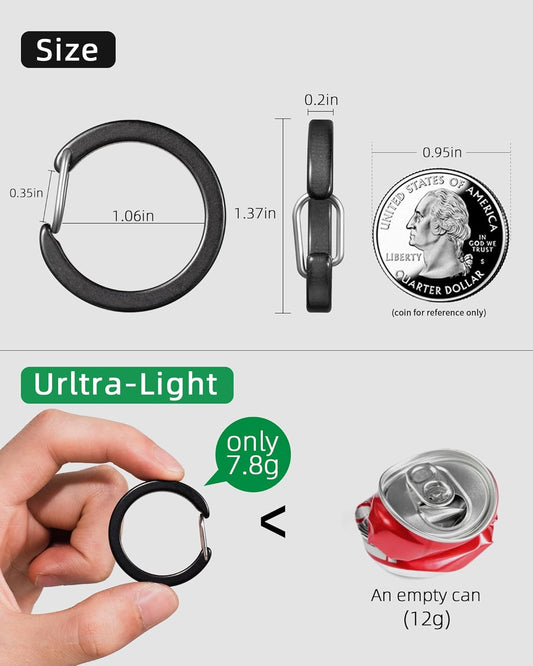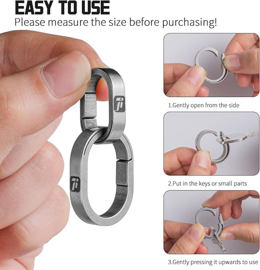 FEGVE Titanium Quick Release Small Keychain Rings with Mini Carabiner for Keys and Bags