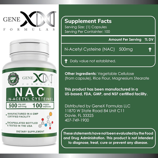 Genex Formulas NAC 500mg Capsules - N-Acetyl Cysteine for Liver Health - Non-GMO, Gluten Free, Vegan (100 Count)Vendor:Genex FormulasRegular price $96.10 AUDRegular priceUnit price / per-