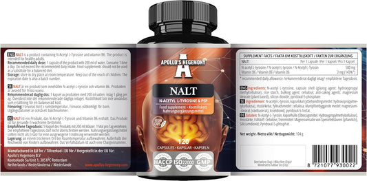 High Strength Apollo's Hegemony N-Acetyl-L-Tyrosine and Vitamin B6 Capsules - Cognitive Booster - 4 Month Supply