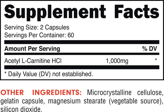 High-Quality Bucked Up Acetyl L-Carnitine Capsules - 1000mg Per Serving for Brain Function - 60 Servings, 120 CapsulesVendor:Bucked UpRegular price $112.48 AUDRegular priceUnit price / per-