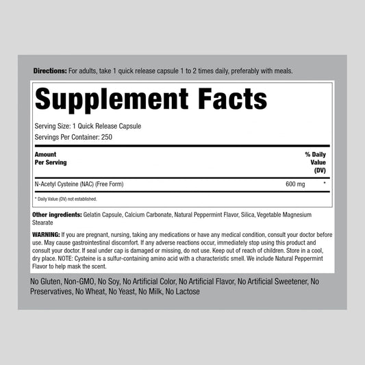 Piping Rock N-Acetyl Cysteine 600mg Capsules - 250 Count - Non-GMO & Gluten Free NAC SupplementVendor:Piping RockRegular price $117.49 AUDRegular priceUnit price / per-