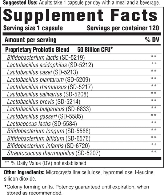 Innate Response Formulas Flora 50-14 Clinical Strength Probiotic Supplement - 50 Billion CFU - 14 Strains - Vegetarian, Non-GMO - 120 Capsules