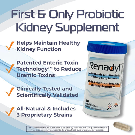 Renadyl Kidney Probiotic Supplement | Supports Urea, Creatinine, & Uric Acid | 45 Billion CFUs | Clinical Tested, Non-GMO | 60 Capsules, Made in USA