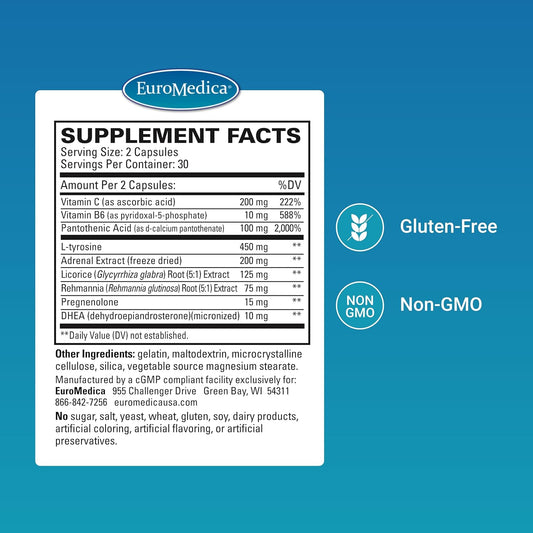 Adrenaplex by EuroMedica - Adrenal Function Support Supplement with L-Tyrosine, Pantothenic Acid & Vitamin B6 - Promotes Adrenal Gland Health & Positive Mood - 60 Capsules