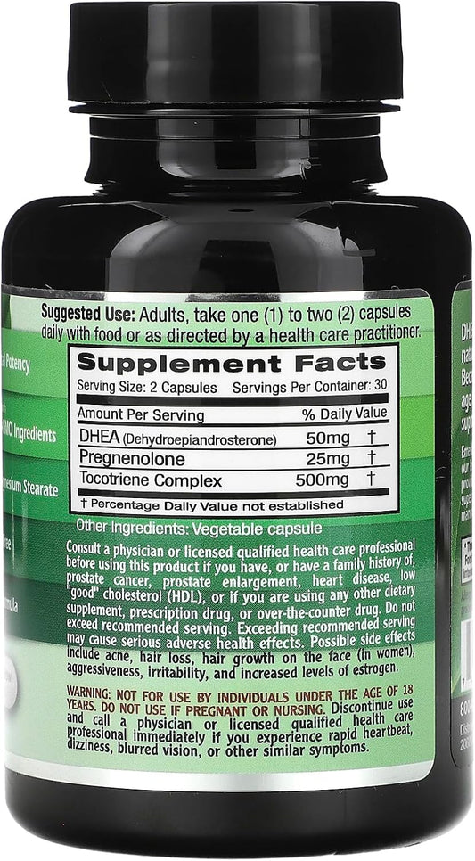 Emerald Labs DHEA 50mg Capsules for Hormone Balance & Adrenal Support - Gluten-Free Supplement with DHEA - 60 Veggie Caps (30-Day)