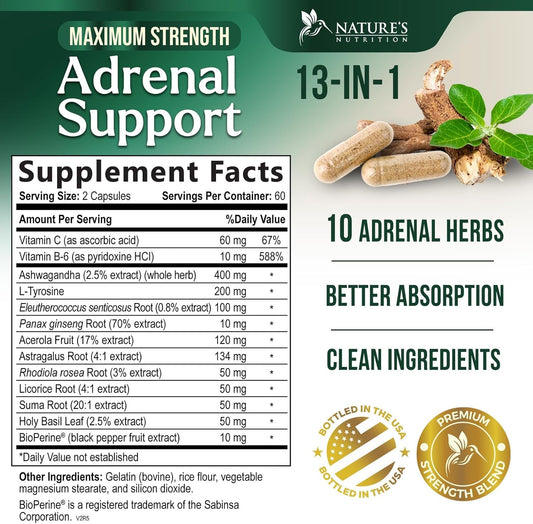 Adrenal Support Supplements with Ashwagandha, Rhodiola Rosea & Holy Basil - Energy Balance, Calm & Relaxation - 120 CapsulesVendor:Nature's NutritionRegular price $109.80 AUDRegular priceUnit price / per-