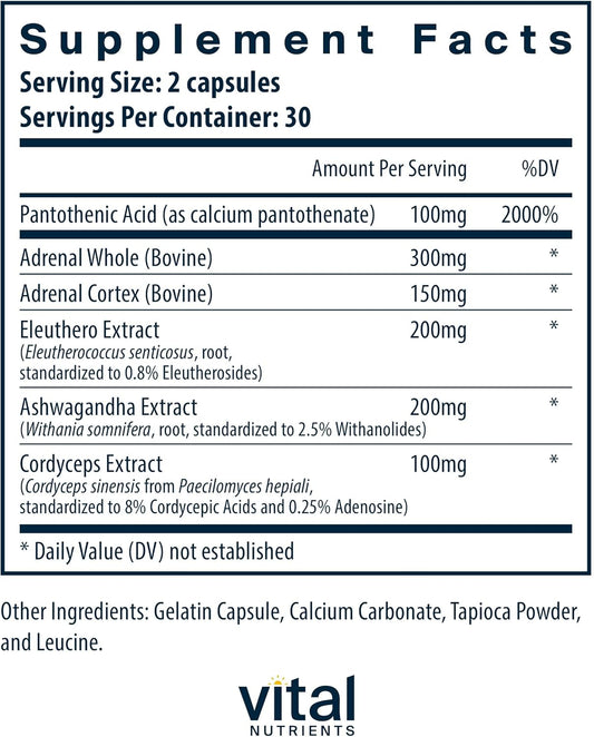 Adrenal Support Supplements for Energy and Stress Management - 60 Capsules, Gluten, Dairy, Soy FreeVendor:Vital NutrientsRegular price $130.94 AUDRegular priceUnit price / per-