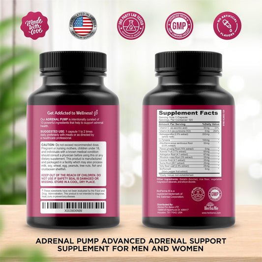 HerbaMe Cortisol Manager Capsules - Adrenal Support Supplement with Ashwagandha & L-Tyrosine for Energy, Stress Relief, Mood Balance, and Fatigue Reduction - 120 Pills