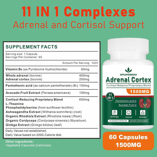 Spliferkou Adrenal Support Complex - 11-in-1 Supplement with Ashwagandha and Pantothenic Acid - Promotes Healthy Adrenal Function and Energy - 120 Capsules