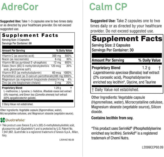 NeuroScience AdreCor and Calm CP Stress + Adrenal Support Bundle - 2 Products, 180 Capsules, 60 CapsulesVendor:NeuroScienceRegular price $376.09 AUDRegular priceUnit price / per-