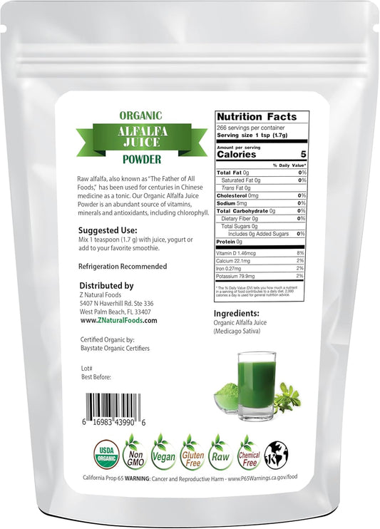 Organic Alfalfa Juice Powder - Green Superfood Mix for Smoothies & Recipes - Raw, Non GMO, Vegan, Gluten Free - 1 lb Pack