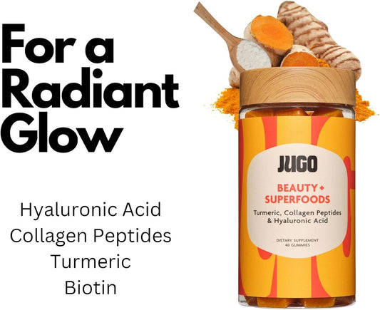 JUGO Beauty + Superfood Gummies with Biotin Collagen, Hyaluronic Acid - 40 Count