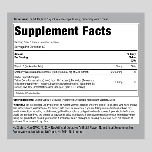 Kidney Support Supplement with Cranberry Extract for Urinary Tract Health - 120 Capsules - 4 Months Supply for Men & Women