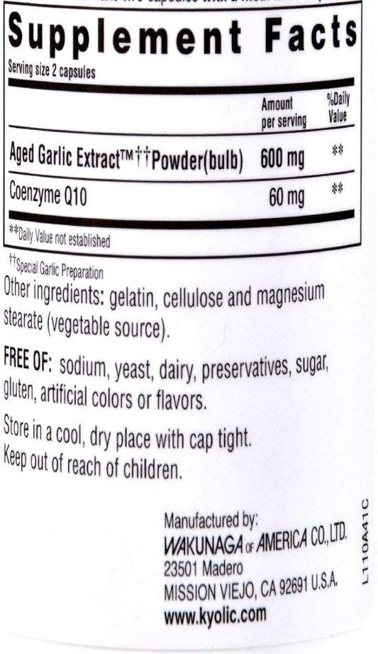 Kyolic Aged Garlic Extract Formula 110 with CoQ10 for Heart Health, 100 Capsules