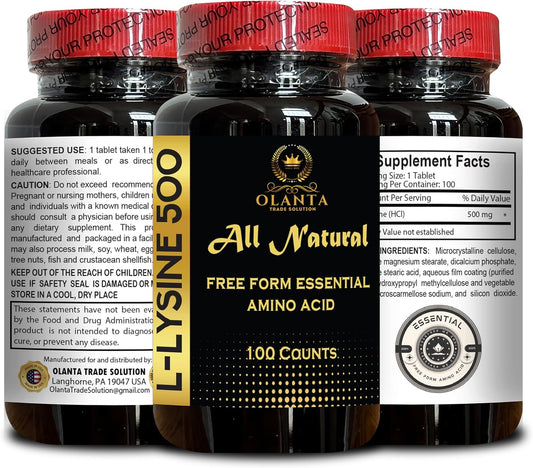 L-Lysine Amino Acid Supplement for Muscle Development and Energy Boost - 100 Count Bottle for Post-Workout Recovery and Daily Intake