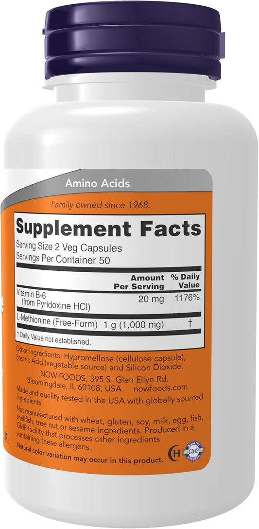 L-Methionine 500 mg with Vitamin B-6 Capsules for Detox Support - 100 Count by NOW Foods