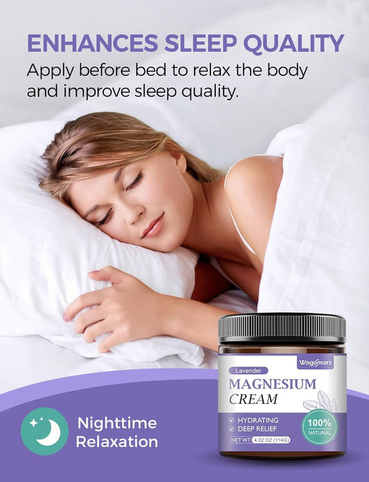 Lavender Magnesium Cream for Sleep - Natural Topical Lotion for Leg Cramps, Muscle Relaxation, and Hydration - Safe for Children