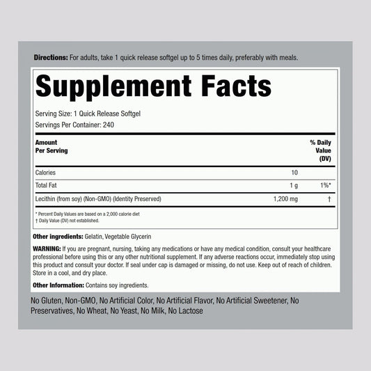 Lecithin 1200mg Softgel Capsules for Men & Women | Non-GMO, Gluten Free | 240 Count