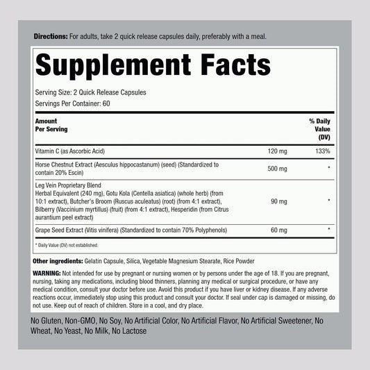 Leg Vein Supplement | 120 Capsules, Non-GMO & Gluten Free | Promotes Healthy Vein Function | Piping Rock