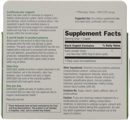 2 Packs of Garlique Healthy Cholesterol Formula with 5000 mcg Allicin, 60 Enteric Coated Caplets - Total 120 Caplets