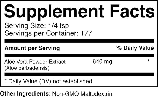 Aloe Vera Powder 200:1 Supplement for Skin Care and Health Benefits - 4 oz/113g - Food Grade, Natural, Vegan, Non-GMO, Gluten Free