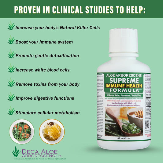 Organic Aloe Arborescens Juice with Raw Honey - Immune Health Formula - 16oz Bottle for Adults & Kids