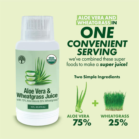 USDA Certified Aloe Juice Shots with Wheatgrass & Flavorall for Gut Detox, Immunity & Skin - Pineapple Flavor, 30-Day Supply