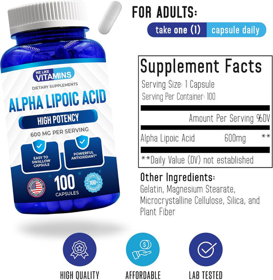 Alpha Lipoic Acid 600mg Capsules - 100 Servings for Joint and Antioxidant Support with Free Radical Protection