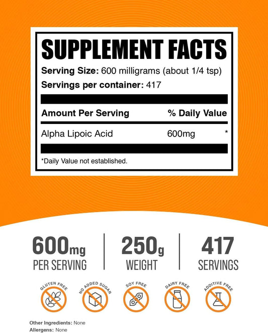 Alpha Lipoic Acid Powder 600mg - 250g (8.8 oz) - Gluten Free ALA Supplement Powder