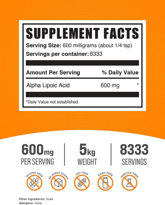 BulkSupplements.com Alpha Lipoic Acid Powder - 600mg ALA Supplement, Gluten Free - 5kg (11 lbs) (Pack of 5)