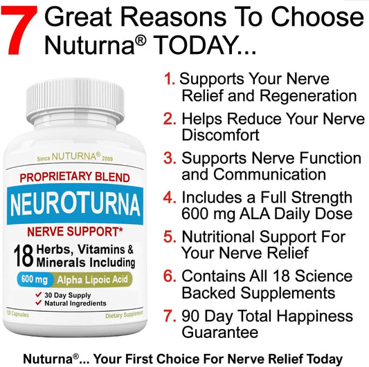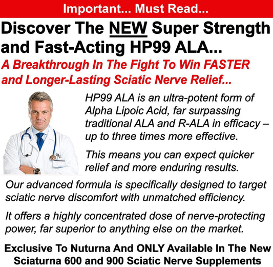 Nuturna Sciatica Nerve Support Supplement - 900mg HP-99 ALA Formula - Max Strength for Feet, Hands, Legs - 18-in-1 Natural Nerve Vitamins - 180 Capsules