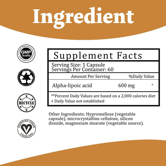 600mg Alpha Lipoic Acid Capsules for Cardiovascular Support & Cellular Health – Vegan Antioxidant Supplement (60 Capsules)