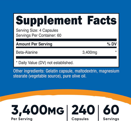 Nutricost Beta Alanine Capsules 3400mg - 2 Pack, Potent Gluten Free & Non-GMO Supplement with 850mg Per Cap, 60 Servings