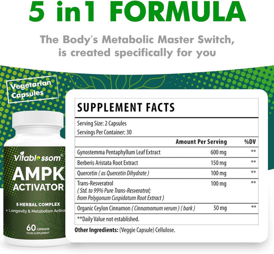 180 Count Vitablosom AMPK Activator Supplement - 5 in 1 Jiaogulan Gynostemma Metabolic Activator - Vegetarian Capsules, Pack of 3