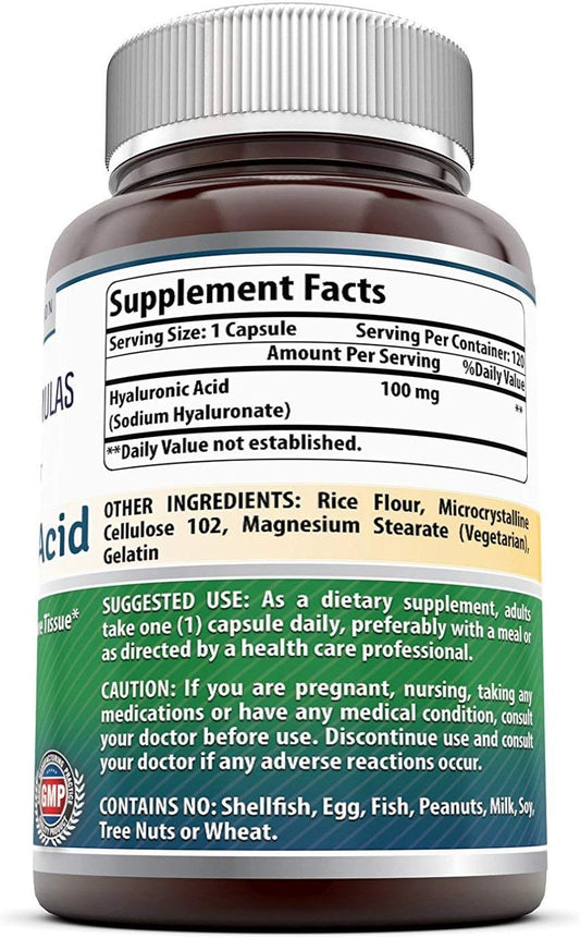 3 Pack Amazing Nutrition Amazing Formulas Hyaluronic Acid 100 mg Capsules Supplement - Non-GMO, Gluten Free, Made in USA - 120 Count