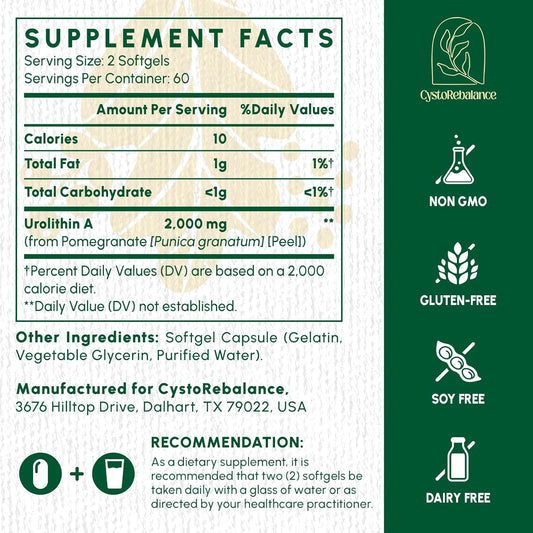 2000MG CystoRebalance Urolithin A Supplement - Antioxidant & Mitochondrial Support - 120 Softgels, 2 Month Supply