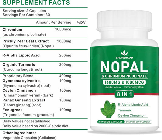 1600mg Super Nopal Prickly Pear Supplement with R-Alpha Lipoic Acid & Turmeric - 120 Capsules