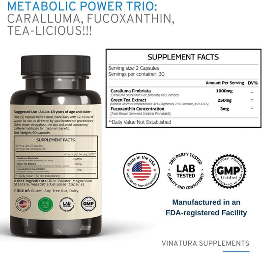 Caralluma Fimbriata & EGCG Immune Support Supplement - 1250mg Per Serving - Made in USA - 60 Capsules