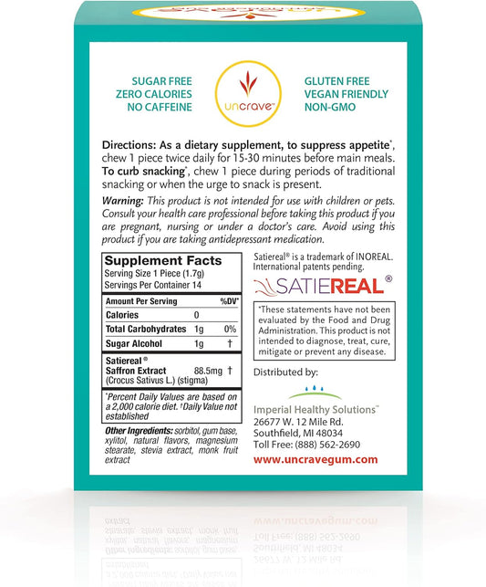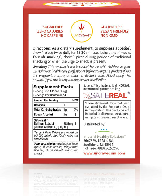 Saffron-Infused UnCrave Gum: Control Cravings, Boost Mood, Support Vision Health - Cinnamon Flavor (14 Pieces)