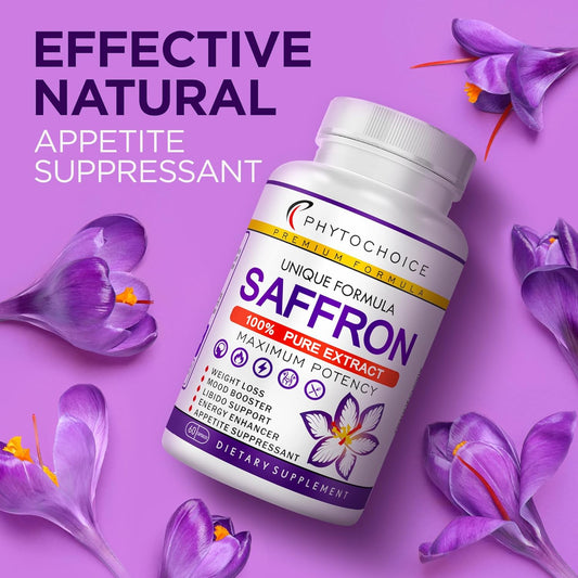 Pure Saffron Extract Capsules for Energy, Mood, Vision, and Heart Health - 60 Capsules - Made in USA