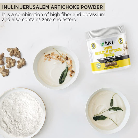Organic Jerusalem Artichoke Inulin Powder (6oz/170g) - Rich in Fiber & Prebiotic, Perfect for Coffee, Smoothies, Juice - Vegan, Gluten-Free - 1 Pack