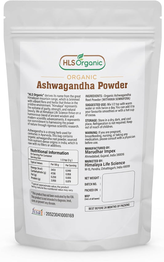 8oz HLS ORGANIC Premium Ashwagandha Root Powder | Finest Grade From India | Raw & Non-GMO | Vegan | 3.5 Month Supply
