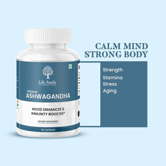 Aveda Ashwagandha Capsules 500mg - Herbal Supplement for Adults - 60 Capsules (1-Month Supply)