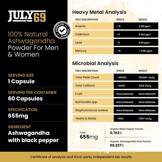 Pure Nature Made Ashwagandha Capsules with Black Pepper - 60 Capsules, 655mg per Serving, Boost Energy & Immunity, Root Extract Complex, for Men & Women, Third-Party Tested